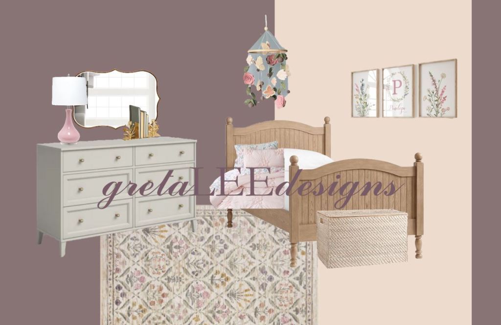 Pinks & Purples, what could be better?! Today’s color series design is featuring Benjamin Moore’s 2025 Color of the Year – Cinnamon Slate! I’ve also included Tissue Pink, the perfect accent color to lighten the moody purple undertone color. These two colors together led me to florals and lots of pinks. Most of these pieces could be styled in a nursery and keep with your child’s room for years to come. It’s sweet, yet sophisticated. Just what sugar & spice is all about! Take a peak below and let me know what you think! Happy Styling – XO, G